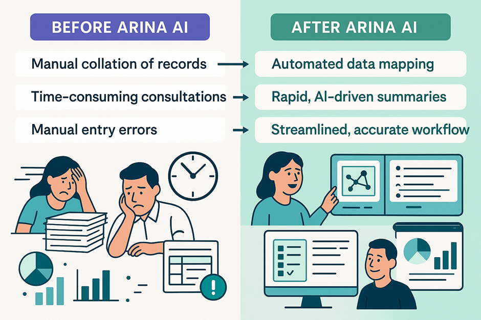 - Time Pressure: With only minutes per consultation, clinicians struggled to manually collate and interpret case files and test results – raising the risk of oversight.